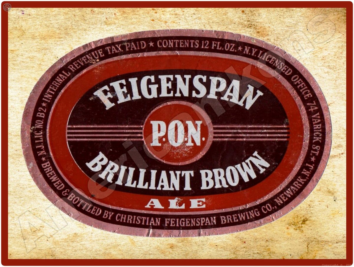 Feigenspan Brilliant Brown Ale Collectible Metal Beer Sign: Newark, New Jersey