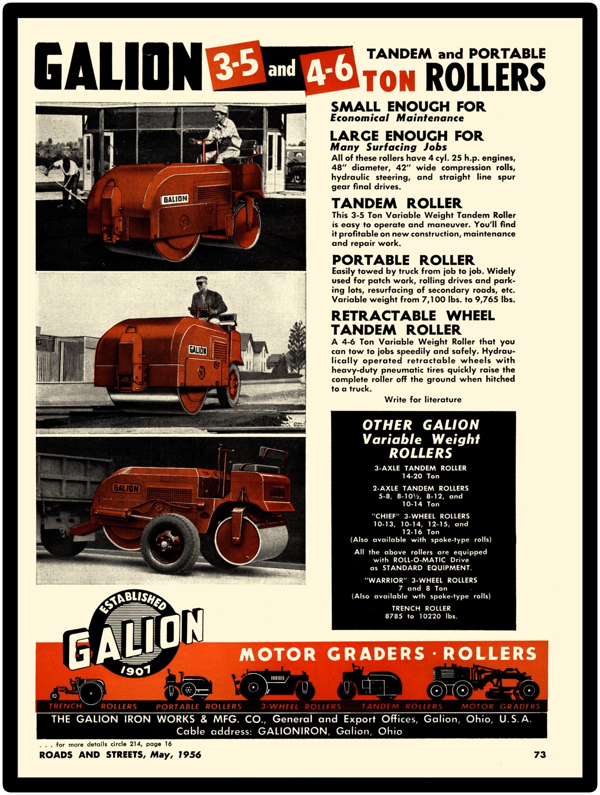 Galion Iron Works 1956 Collectible Metal Sign: Tandem & Portable Road Rollers, Heavy Equipment