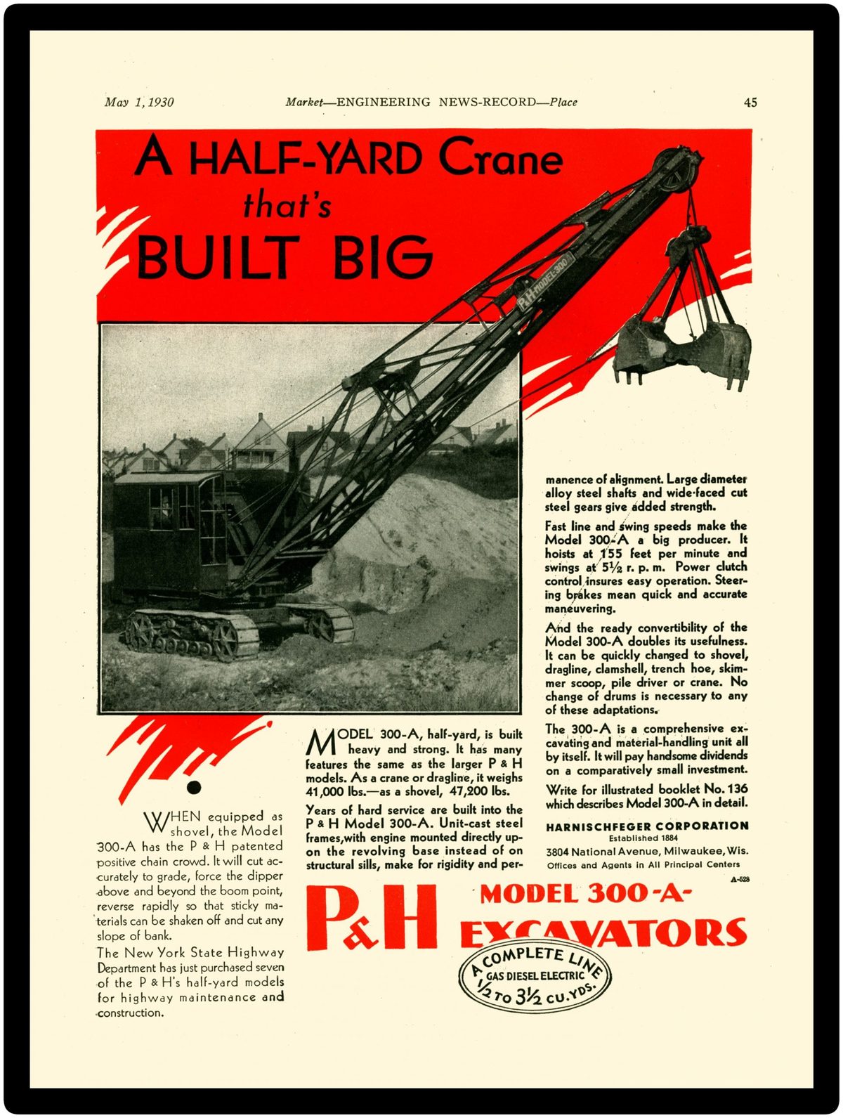 Tags: collectible, harnischfeger model 300-a excavator, metal sign, milwaukee wisconsin, p & h
