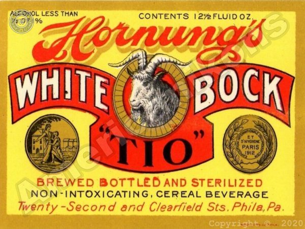 Hornung’s White Bock Cereal Beverage Collectible Metal Sign: Philadelphia, Pennsylvania