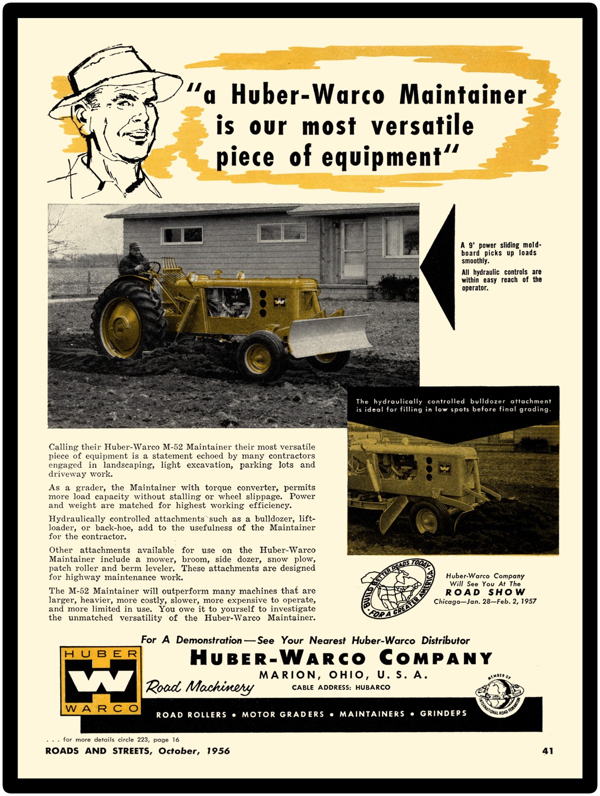 Huber Warco Heavy Equipment 1956 Collectible New Metal Sign: Maintainer Tractor
