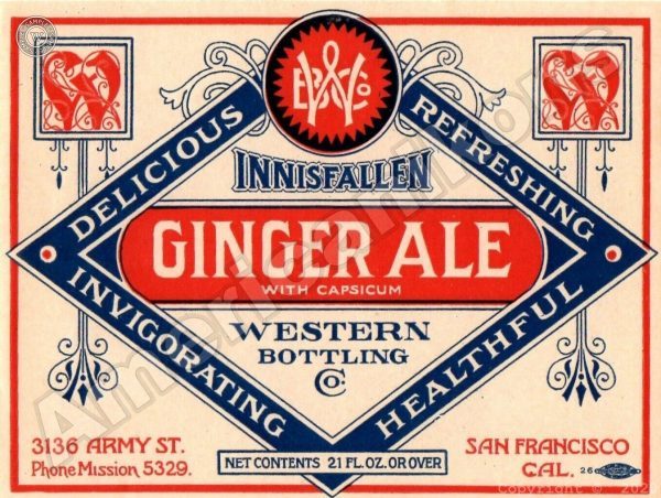 Innisfallen Ginger Ale by Western Bottling Company Collectible Metal Sign: San Francisco, California