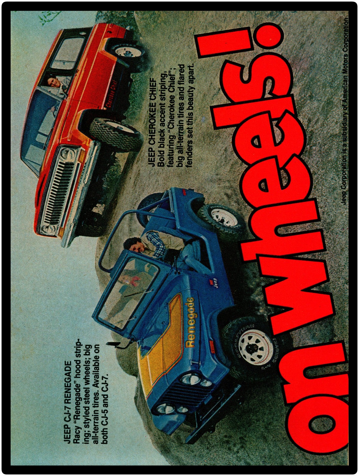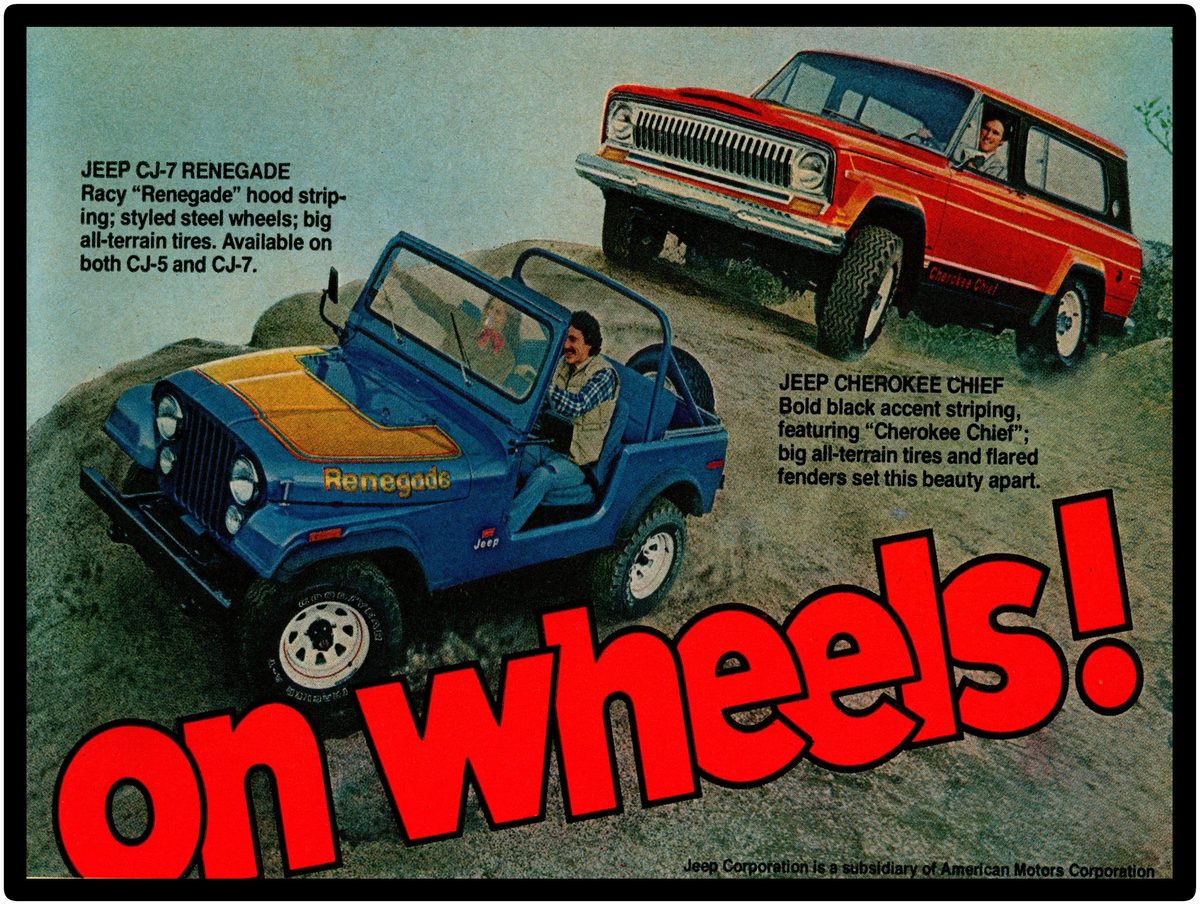 Jeep CJ-7 Renegade and Cherokee Chief New Metal Sign: “On Wheels!”