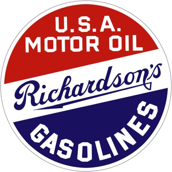 Richardson’s Motor Oil & Gasoline Collectible NEW Steel Sign: 28″ Diameter & Made in USA