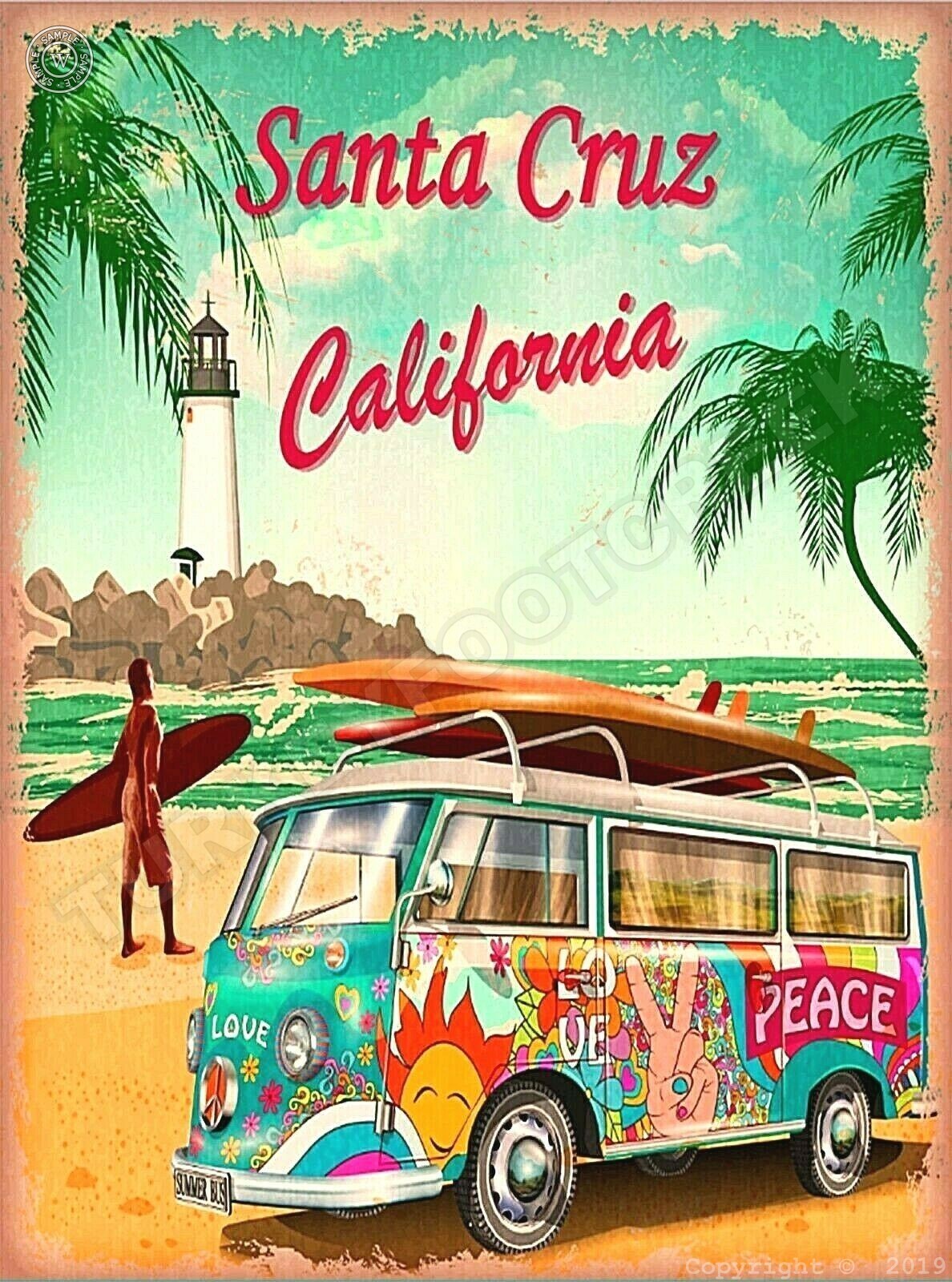 Santa Cruz, California Hippy Beach Surf Bus Collectible New Metal Sign