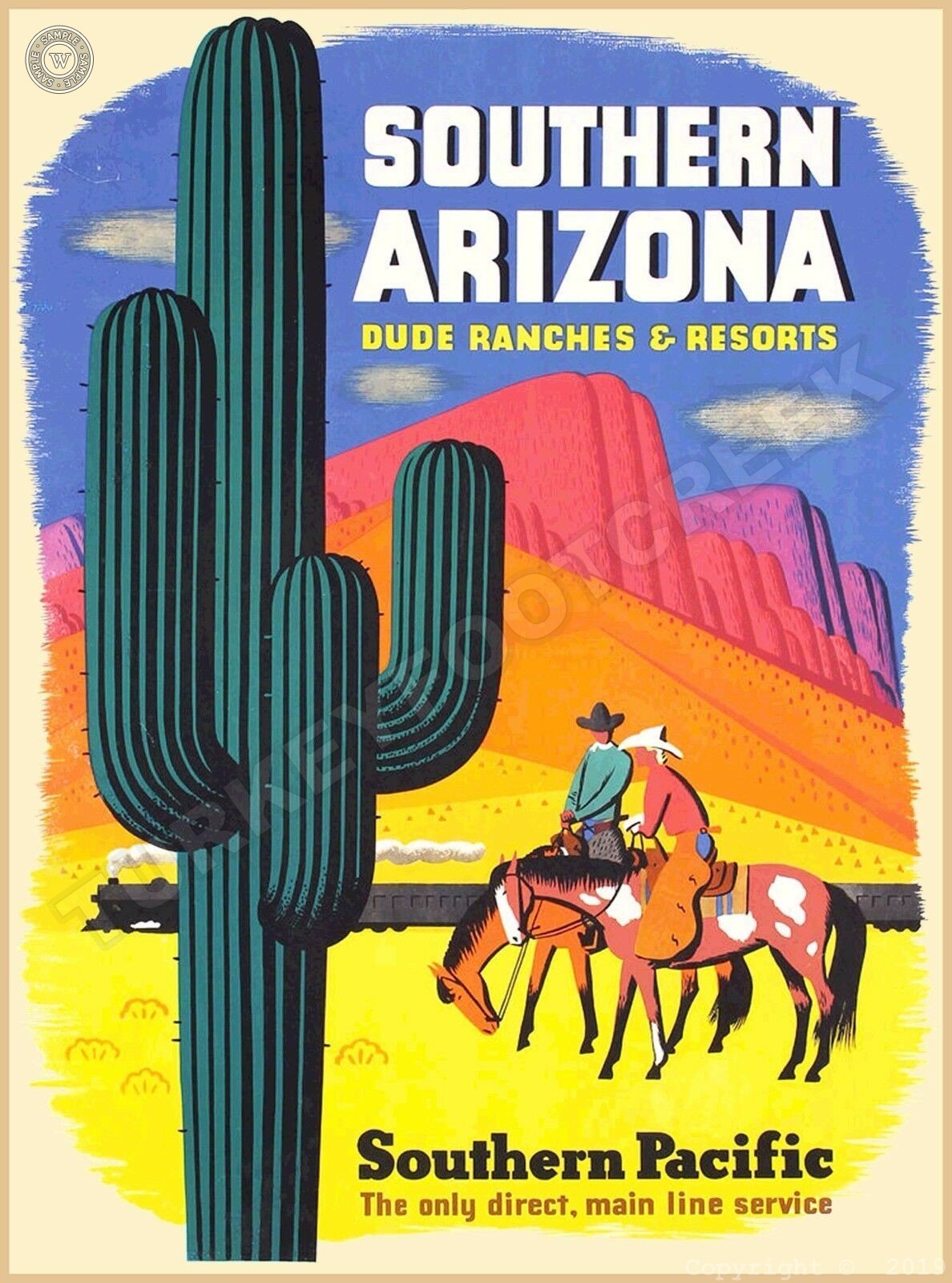 Southern Pacific Railroad Collectible New Metal Train Sign: Southern Arizona Vacation