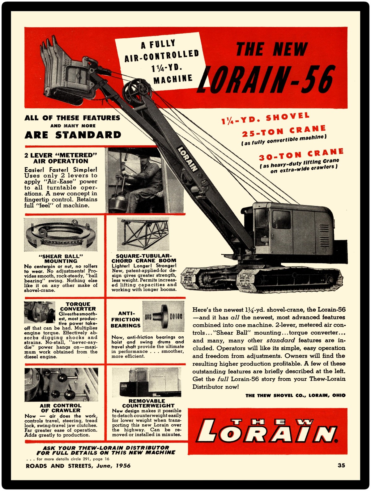 Thew Shovel Company 1956 Collectible New Metal Sign: Lorain 56 Shovel Crane