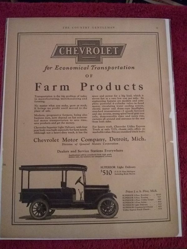 Vintage 1923 Chevrolet Superior Light Delivery Truck Collectible Advertisement