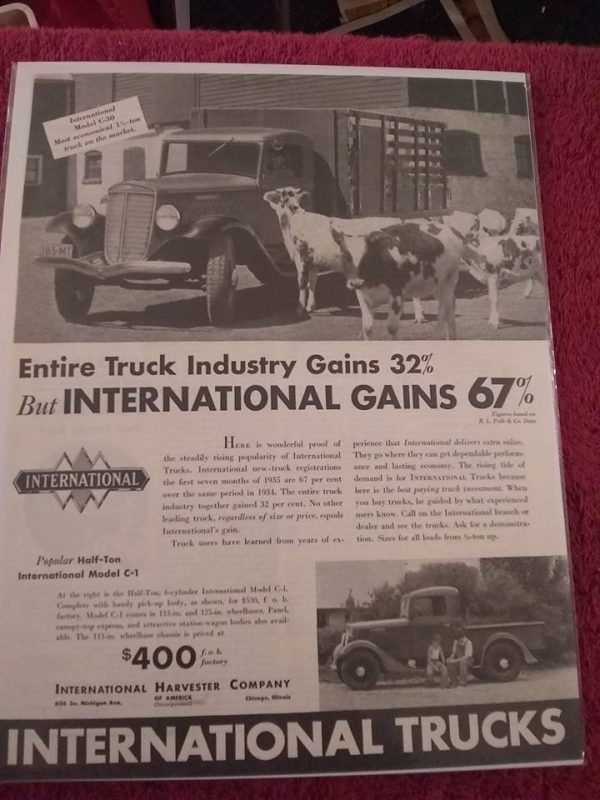 Vintage 1935 IH International Harvester Pickup Truck Half Ton Model C-1 Collectible Ad Advertisement.