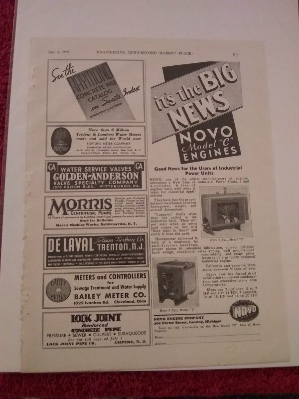 Vintage 1937 Novo Model C Engine Ad Advertisement Industrial Power Unit 4&2 Cyl