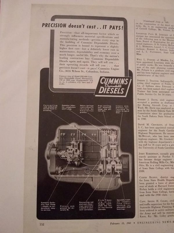 Very nice 9″ x 5.5 original ad for Cummins Diesel Engines, Columbus, Indiana