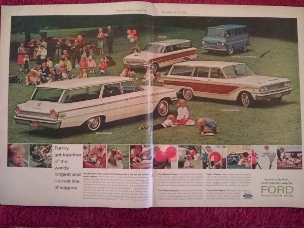 Vintage Collectible 1963 Ford Falcon, Galaxie, and Fairlane Station Wagon Two Page Automobile Advertisement.