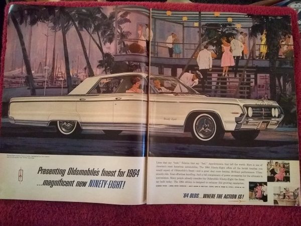 Vintage Collectible 1964 Oldsmobile 98 Ninety-Eight Two Page Automobile Advertisement.