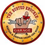 Vintage Collectible Busted Knuckle Garage Hot Rod XL Made in USA Giant Round Metal Sign 28 x 28 Inches
