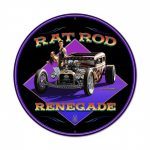 The Vintage Collectible Rt. Route 66 End of the Line Metal Sign measures 28 inches in diameter and weighs around 7 pounds. Manufactured in the USA, the sign is crafted out of heavy-gauge 24 gauge US steel and is sublimated to make the image a part of the powder coating. The sign is drilled and riveted.