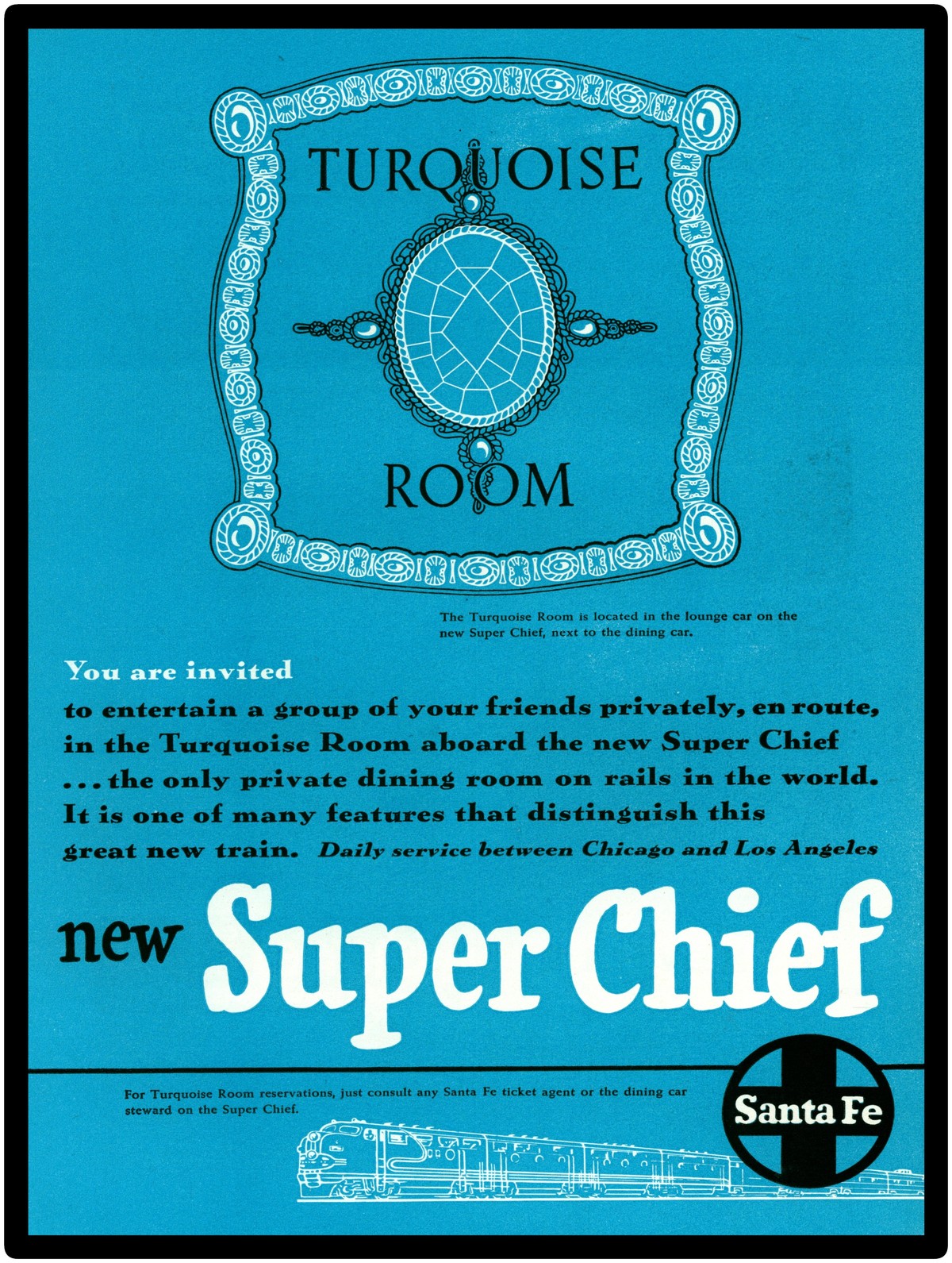 Vintage Look Santa Fe Railroad Super Chief New Train Sign: Turquoise Room