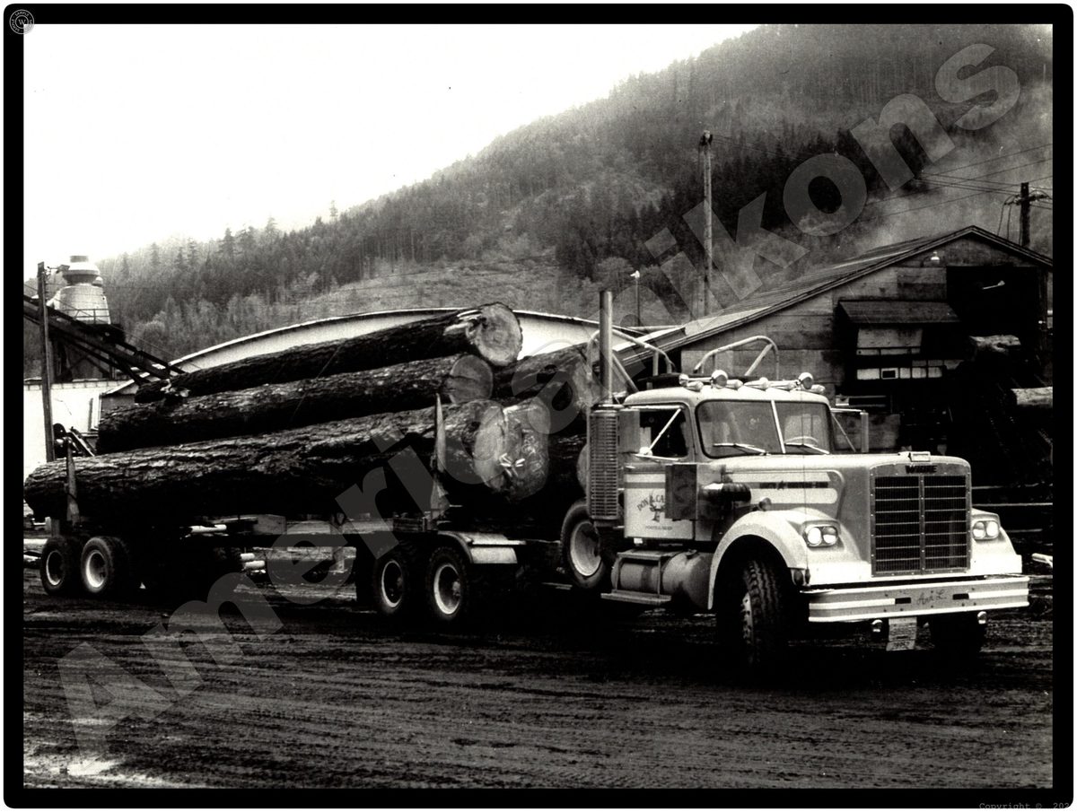 White Trucks Collectible Metal Sign: Vintage Log Hauler on the Job